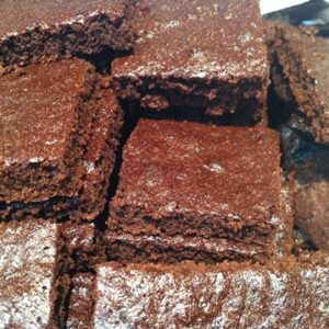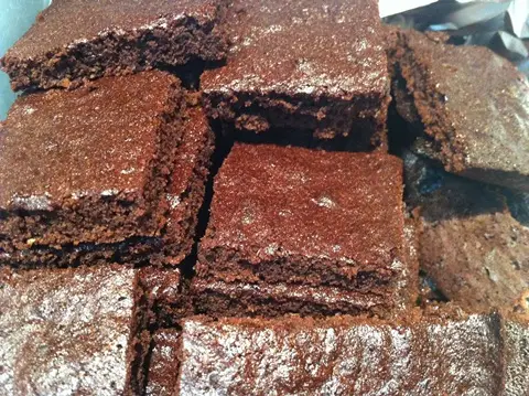 - Pomiješajte maslac i šećer, postat će grudvast. Dodajte javorov sirup, naranču, koricu i pulpu. Jaja umućena s malo soli dodajte šećeru, pa na kraju dodajte brašno pomiješano s kakaom i praškom za pecivo. Smjesu ulijte na lim obložen lim papirom i poravnajte. Pecite na 170°c oko 20 min. Vruć režite tankim nožem na kocke po želji i ostavite da se ohlade. Poslije prebacite na tanjur ili u dobro zatvorenu limenu kutiju.